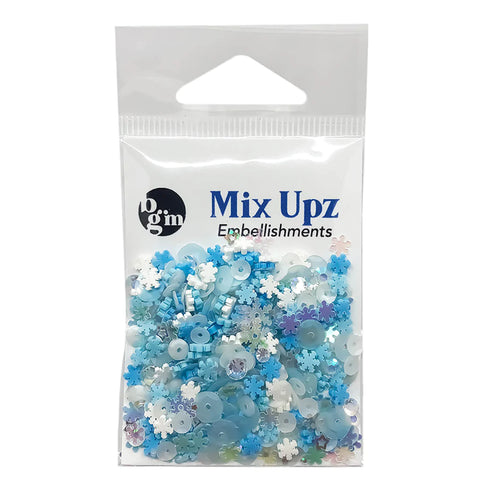 FROZEN Mix Upz offer a combination of polymer clay pieces, iridescent snowflake shaped confetti , round sequins that color coordinate with the other ingredients. A beautiful mix of classic winter colors.