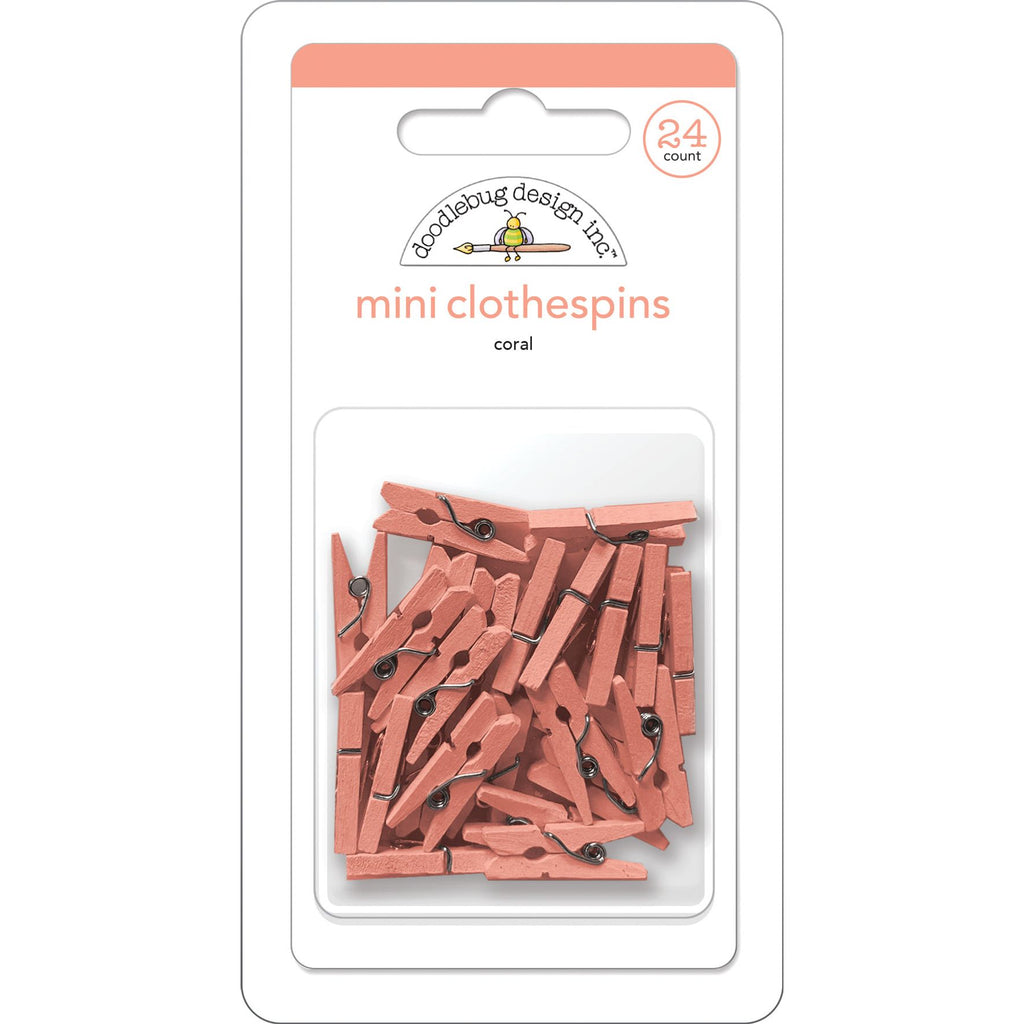 Introducing mini clothespins, a fun, pint-sized embellishment from Doodlebug DesignTM! Whether crafting a mini pendant, or creating a thoughtful card – these adorable, miniature-sized, classic clothespins add a great pop of color and dimension to all your projects and crafts. In a fantastic colorway of your favorite DoodlebugTM shades; mini clothespins are available in 14 color packs, each containing 24 petite clothespins.