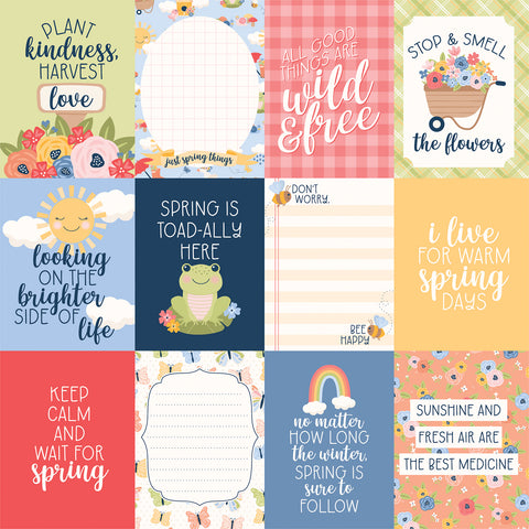 Echo Park - Blossoms and Bees - 12x12 Single Sheet - 3x4 Journaling Cards