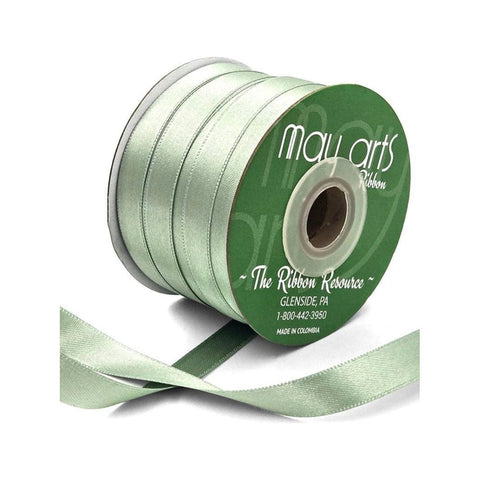 Ribbon - 1/2 inch Luster Double Faced Satin Ribbon with Woven Edge / Sage Green