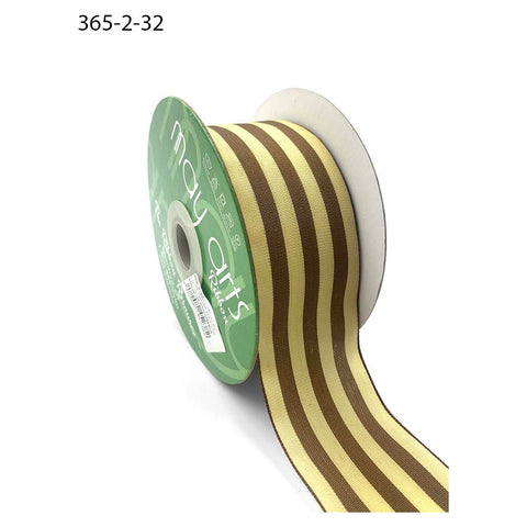 Ribbon - 2 inch Striped Ribbon with Woven Edge / Antique Gold and Ivory