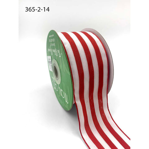 Ribbon - 2 inch Striped Ribbon with Woven Edge / Red and White