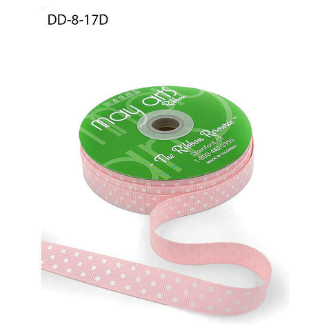 Ribbon - 5/8 inch Grosgrain Printed Dots Ribbon with Woven Edge / Pink and White Dots